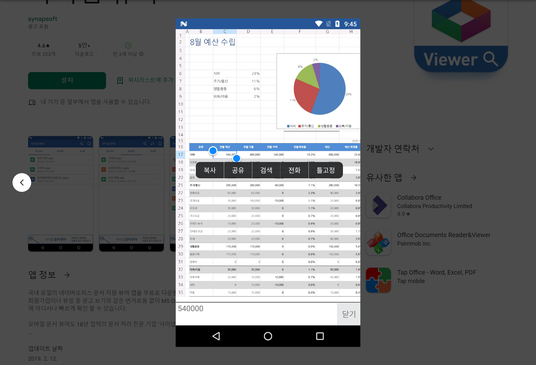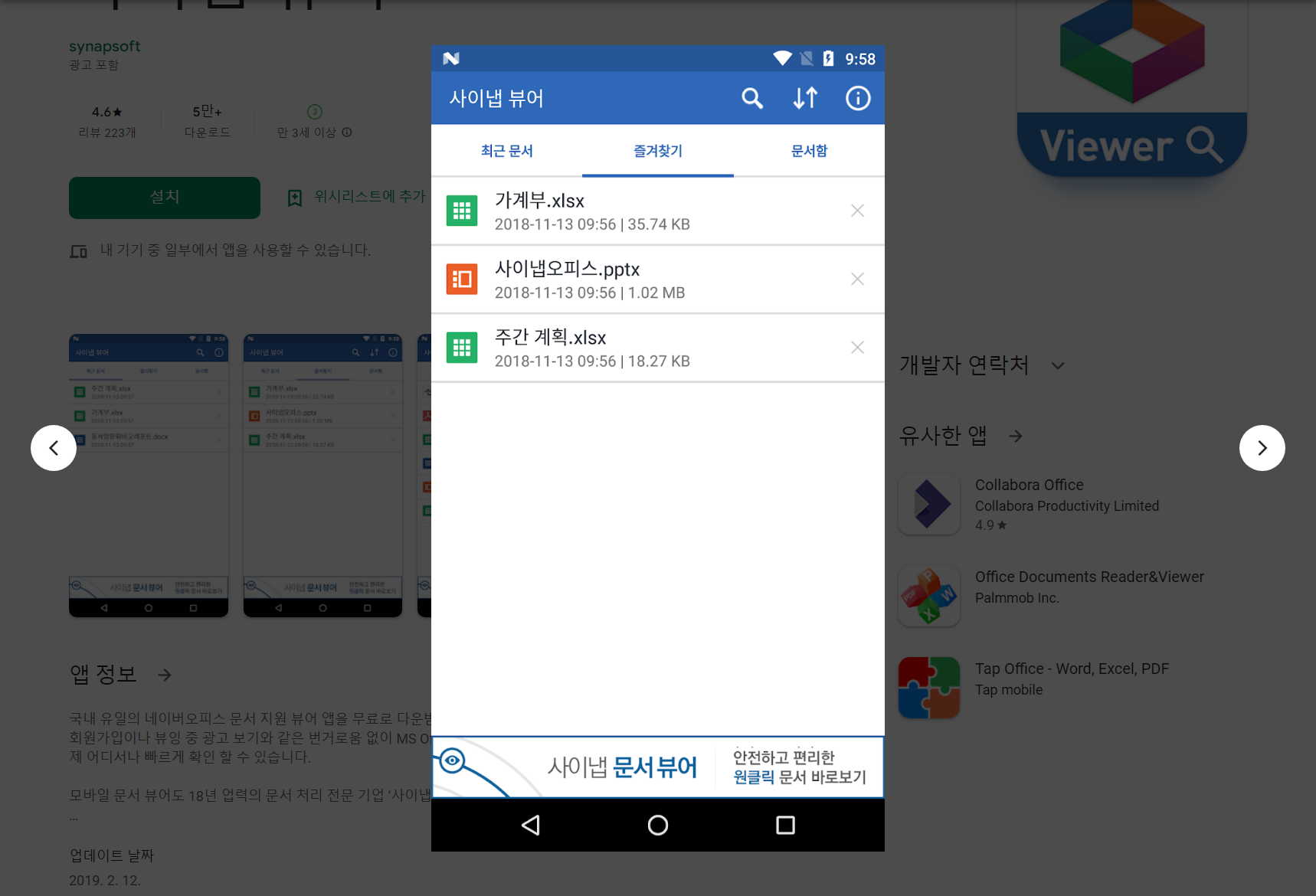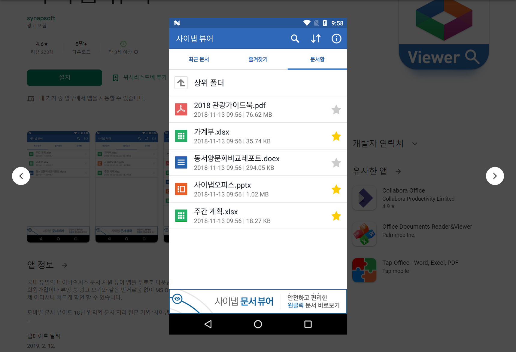 국내 유일의 네이버오피스 문서 지원 뷰어 앱을 무료로 다운받으세요