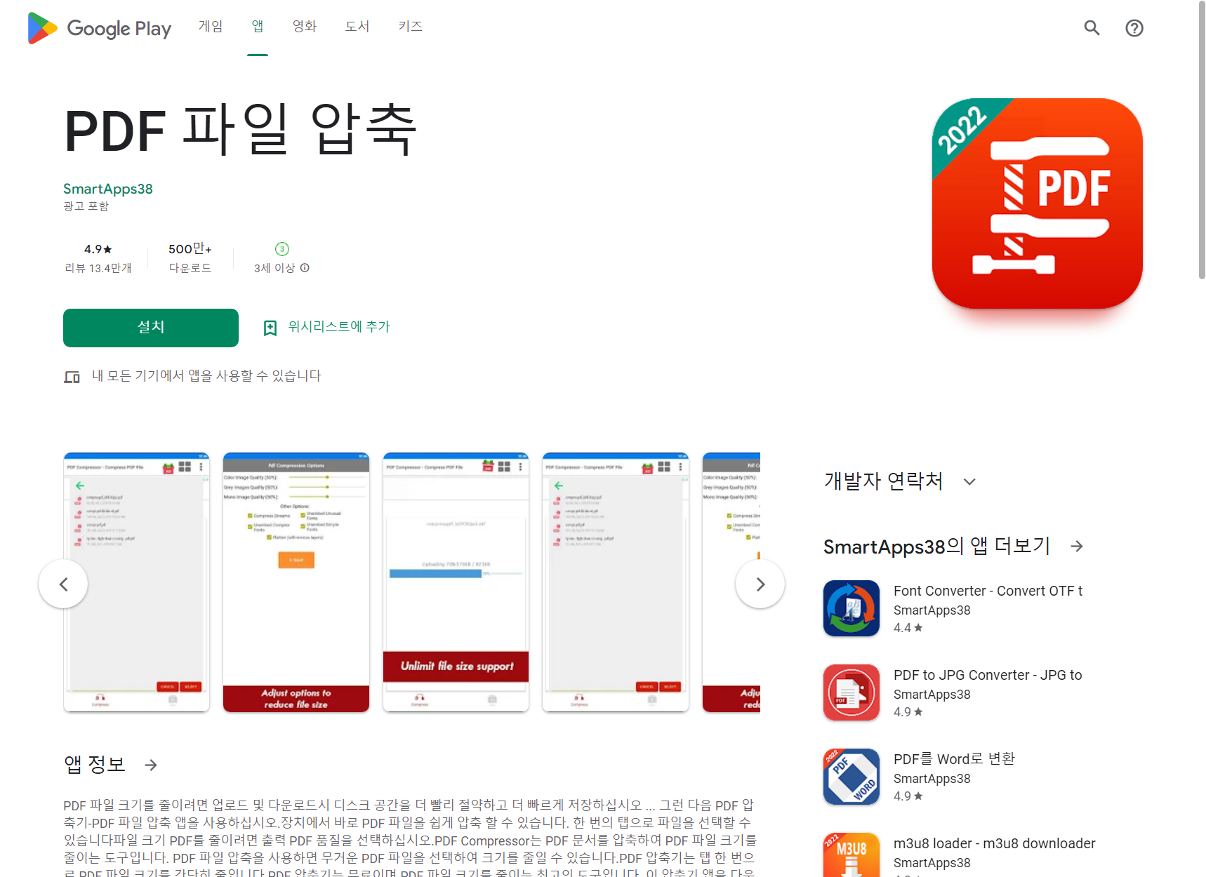 PDF 파일 압축 앱 정보