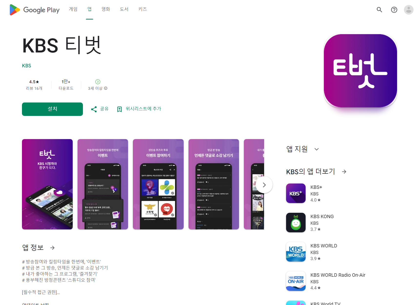 KBS 티벗 앱은 대한민국의 주요 방송사인 KBS(Korea Broadcasting System)가 제공하는 플랫폼으로, 사용자들에게 다양한 방송 프로그램에 참여하고 즐길 수 있는 기회를 제공합니다. 이 앱은 방송 프로그램과 상호작용하며 댓글을 남기고, 즐겨찾는 프로그램을 추적하며, 다양한 방송 콘텐츠를 제공하여 사용자들에게 풍부한 엔터테인먼트 경험을 선사합니다.