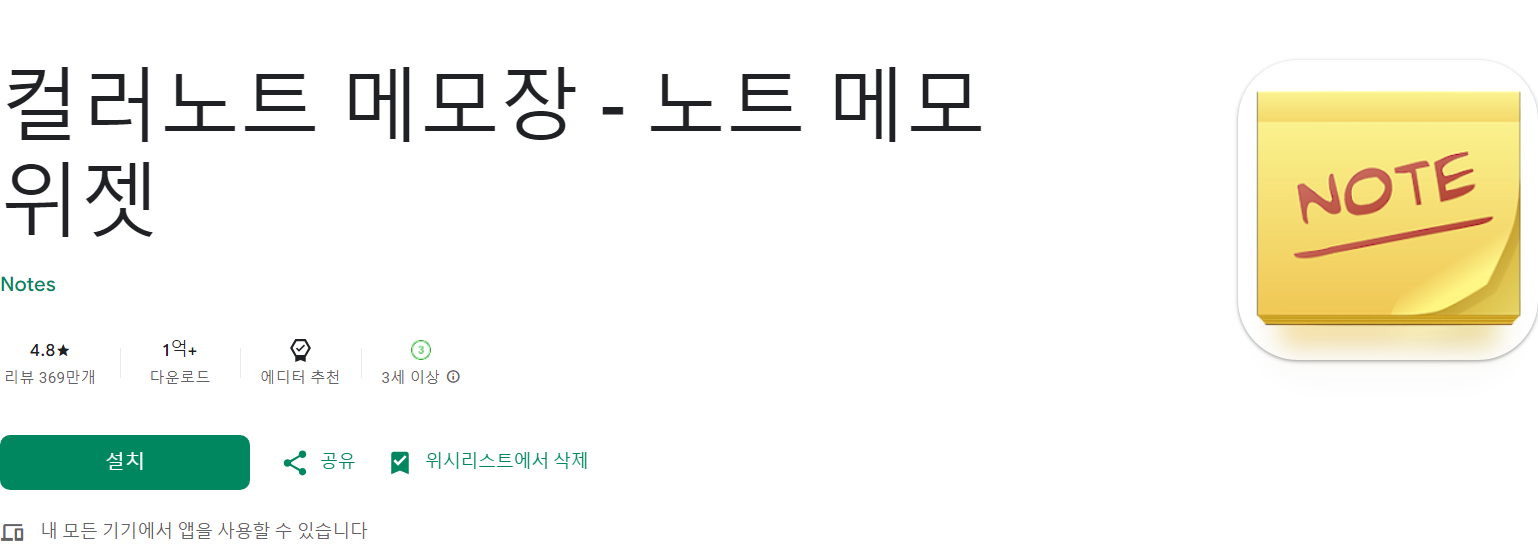 컬러노트 메모장 - 노트 메모 위젯 - Google Play 앱