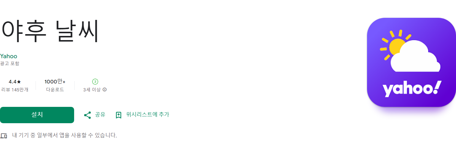 Google Play 스토어에서 쉽게 다운로드할 수 있는 야후 날씨 앱은 이미 1000만 이상의 다운로드를 기록하며 많은 사용자들에게 인기를 얻고 있습니다. 3세 이상 사용자를 대상으로 하는 이 앱은, 날씨 정보뿐만 아니라 사용자들이 제공한 아름다운 사진들로 시각적인 즐거움을 제공합니다. 정확한 날씨 정보와 시각적 경험을 원하는 사용자들에게 이 앱은 매우 유용한 선택이 될 것입니다.